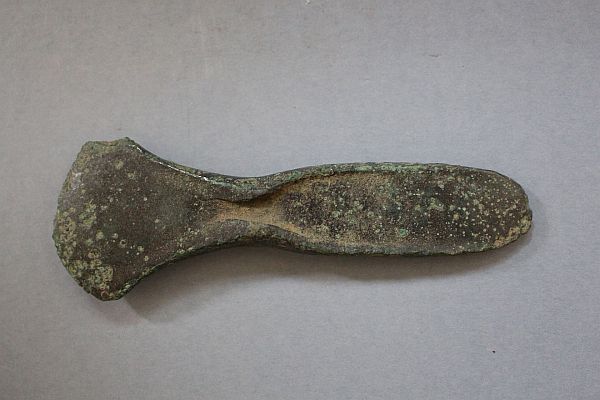 Drugi obiekt został odkryty przez Pana Władysława Magłysza. Jest to siekierka brązowa znaleziona na polu ornym pomiędzy Bolesławcem, a Bolesławicami. Niewielkie narzędzie jest wykonane z brązu, ma wachlarzowate ostrze i płaską część obuchową. Boczne skrzydełka zostały zniszczone, a ostrze w wielu miejscach jest wyszczerbione. Znalezisko jest silnie skorodowane i nosi ślady długotrwałego użytkowania. Wiek siekierki roboczo określono na ok. 4200 lat i powiązano z kulturą unietycką. Jeśli przypuszczenia okażą się słuszne, siekierka będzie najstarszym brązowym przedmiotem w Dziale Archeologii bolesławieckiego Muzeum.
