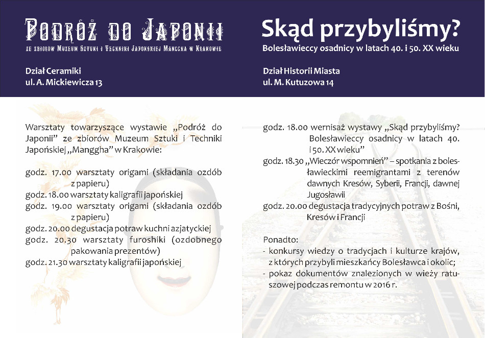 18.30 – „Wieczór wspomnień” – spotkania z bolesławieckimi reemigrantami z terenów Kresów, Syberii, Francji, dawnej Jugosławii