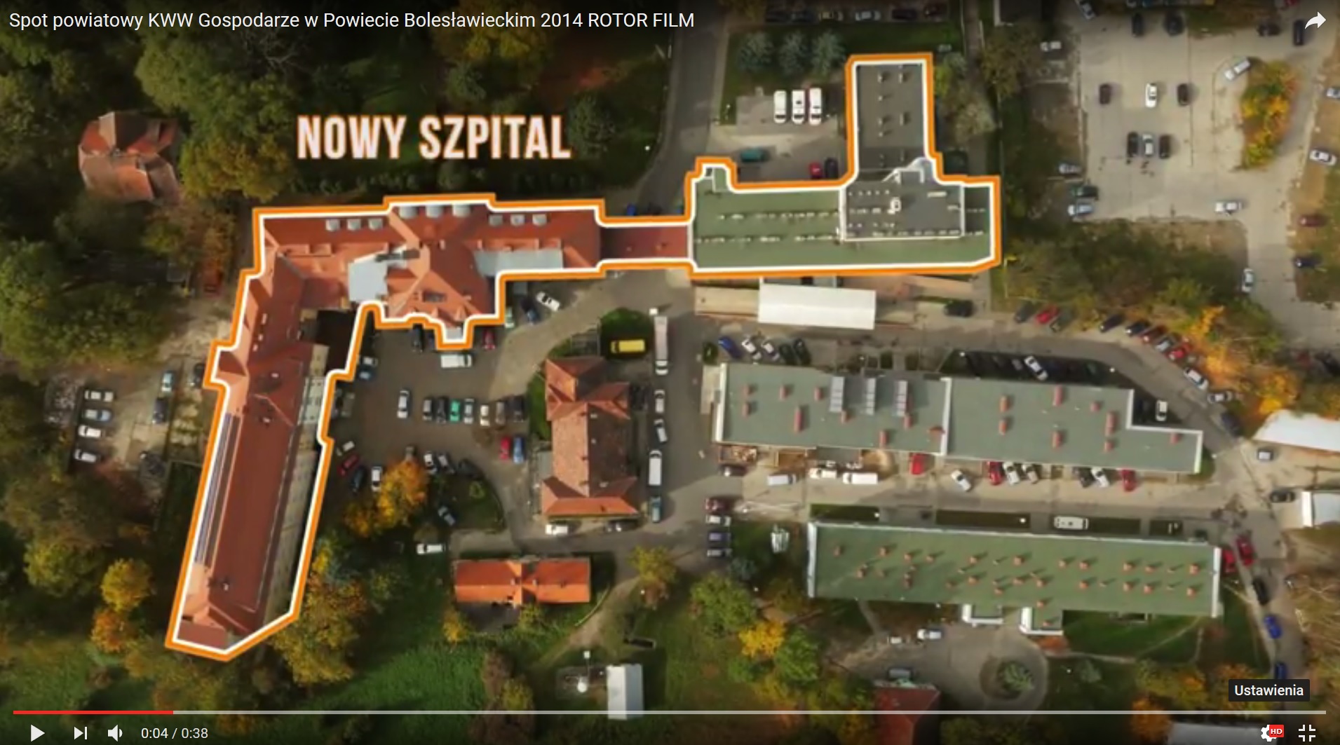 Fot. Print Screen – YouTube, Szpital Powiatowy – Spot wyborczy prezydenckiego Komitetu Gospodarze w Powiecie Bolesławieckim 2014, w którym obiecano m.in. nowy Szpital, nową Szkołę Specjalną, i halę przy „Elektroniku”.