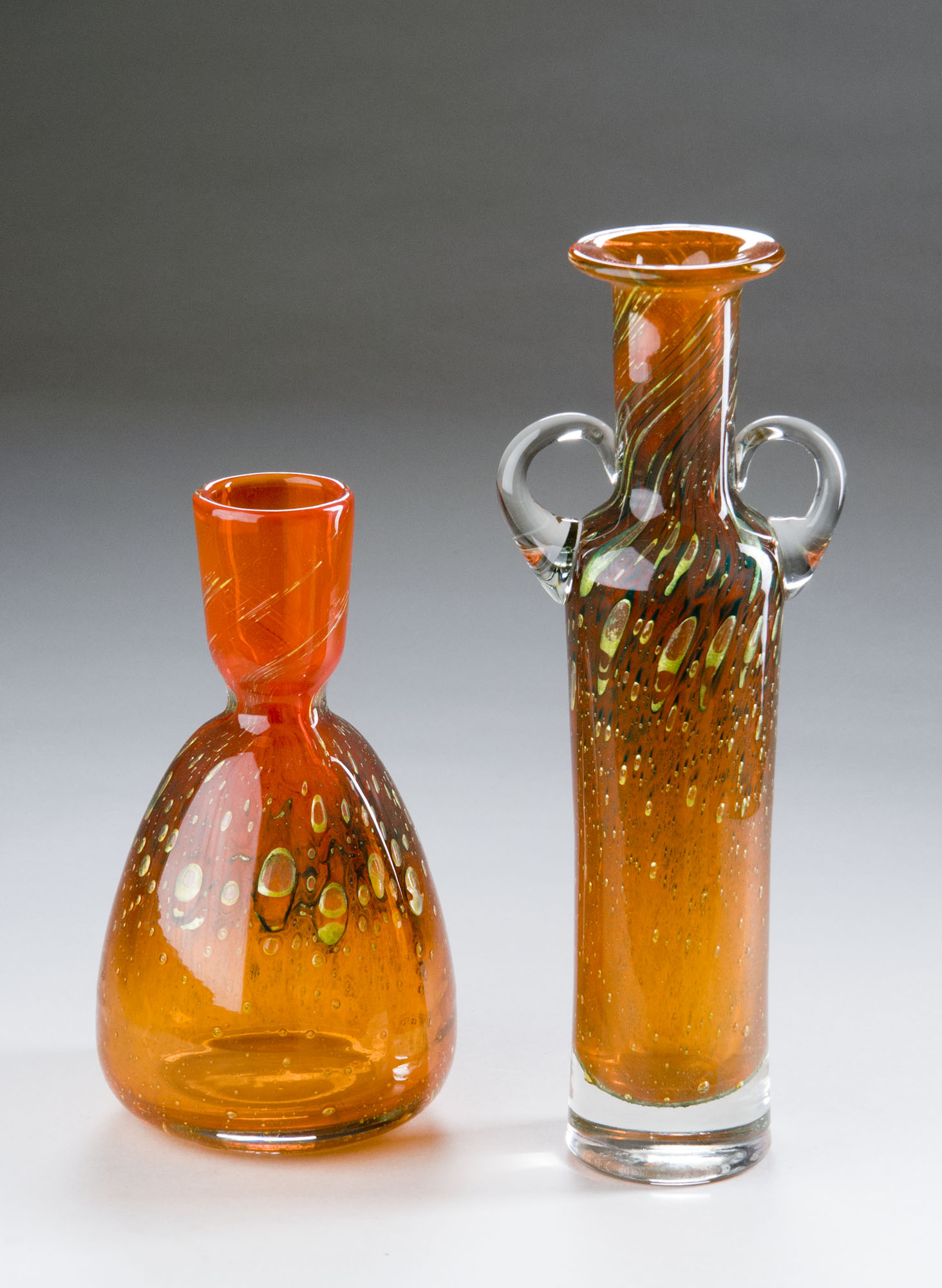 1. Butla z uchami i wazon (1974-1975), szkło sodowe barwione w masie typu „antico”, Zygmunt Janota, Huta „Hortensja”, zbiory Muzeum Ziemi Kłodzkiej w Kłodzku