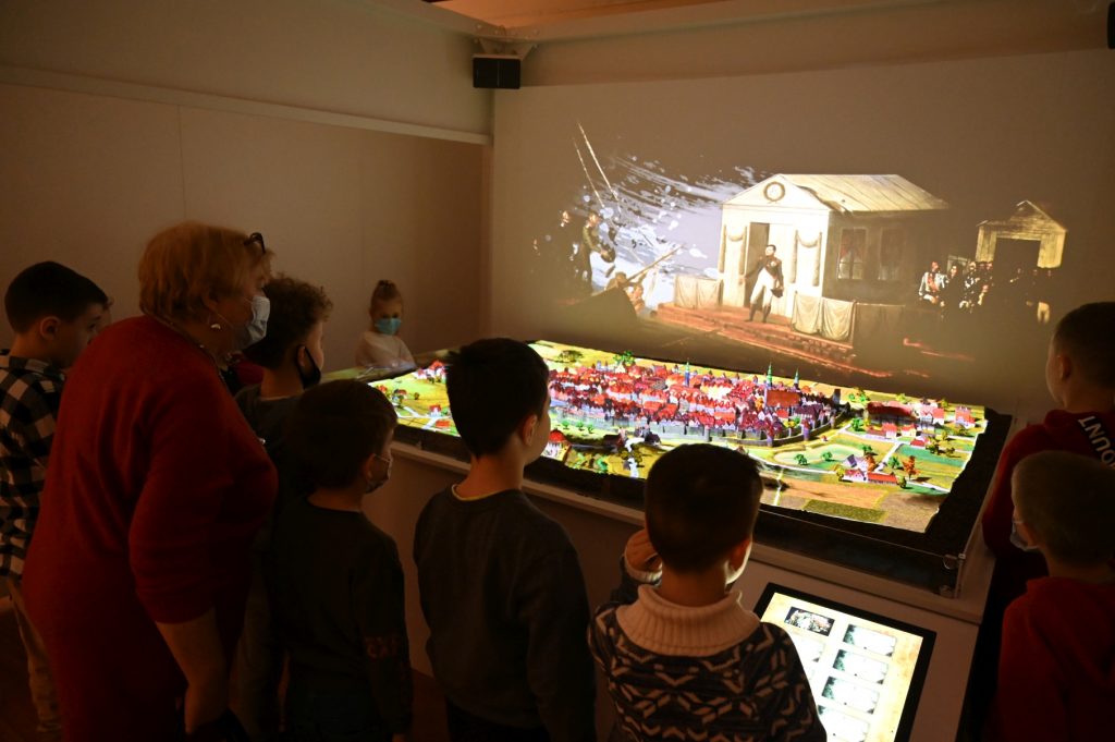 Moduł ekspozycyjny stanowiły edukacyjne elementy wystawy „Śladami kampanii napoleońskiej w Bolesławcu”, prezentowanej w okresie 11.02.-03 2022 r., która była jednym z najważniejszych elementów projektu „1000 lat Górnych Łużyc – ludzie, grody, miasta” realizowanego w latach 2019-2022 przez sześciu partnerów z Polski i Niemiec. Szczególne walory dydaktyczne miały w tym zakresie wirtualna makieta Bolesławca, prezentująca w sposób narracyjny wydarzenia epoki napoleońskiej według 5 scenariuszy oraz bezpieczna multimedialna strzelnica, umożliwiająca zapoznanie się ze sposobem działania broni palnej w tym czasie. Elementami tego modułu były również: czterojęzyczny komiks „Bolesławieckie epizody wojen napoleońskich”, do którego cyfrowej wersji odsyłały kody QR umieszczone w poszczególnych punktach ekspozycji oraz specjalnie przygotowana taktyczna gra planszowa, rozgrywana miniaturowymi modelami żołnierzy okresu napoleońskiego.