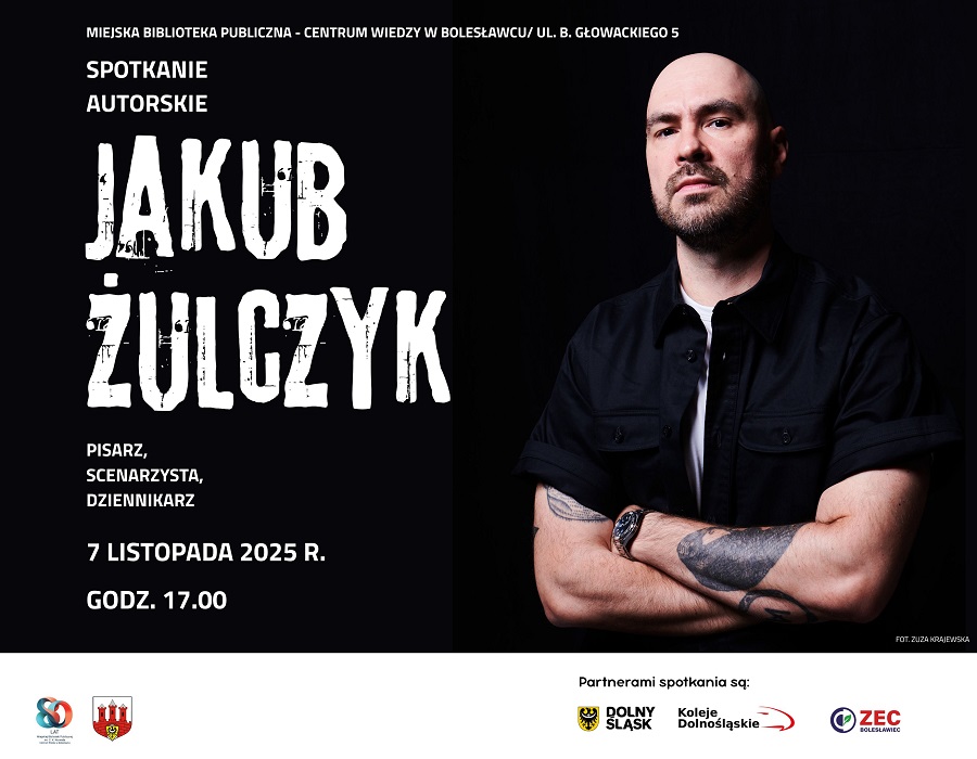 Zapraszamy na spotkanie autorskie z Jakubem Żulczykiem, jednym z najgłośniejszych i najbardziej cenionych polskich pisarzy młodego pokolenia. Jest autorem głośnych tytułów, takich jak „Ślepnąc od świateł”, „Wzgórze psów”, „Radio Armageddon”, „Zmorojewo” czy „Instytut”. Jakub Żulczyk to postać wielowymiarowa – pisarz, scenarzysta i publicysta, który w swojej pracy artystycznej nie boi się poruszać trudnych i często kontrowersyjnych tematów.
